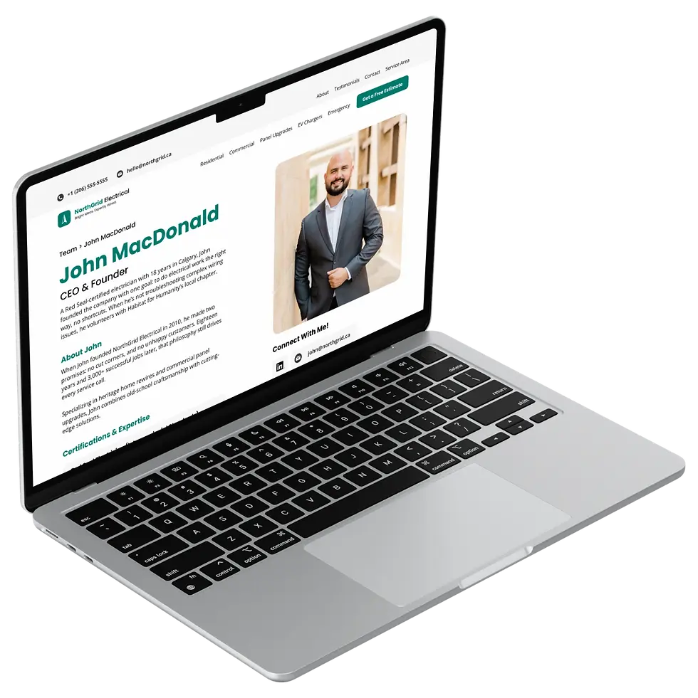 Your team is your greatest asset, let us help you highlight their qualifications with professional web design for electricians. Our electrician web design agency creates engaging team profile pages that put faces to your business, featuring certifications, specialties, and years of experience.