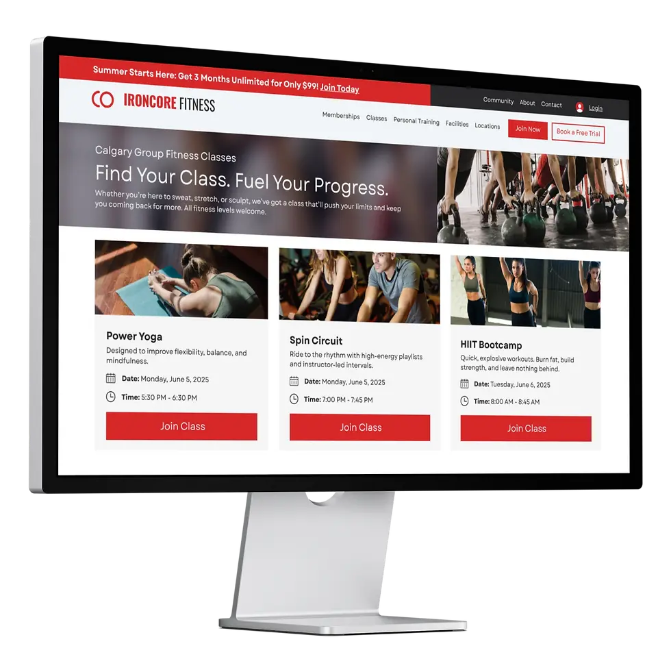 A dynamic, easy-to-navigate class schedule is essential for member retention and new sign-ups. As a forward-thinking gym web design company, we build custom class schedules that are mobile-friendly, easy to update, and fully integrated into your site.